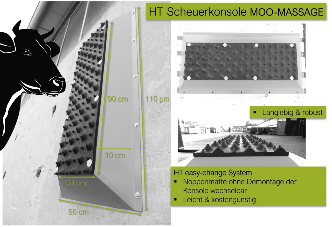 Unsere Scheuermöglichkeit für Bullen und Rinder ermöglicht durch platzsparende Montage an Stallwänden optimalen Komfort für alle Tiere.