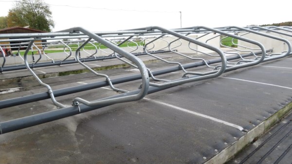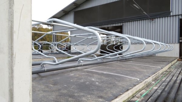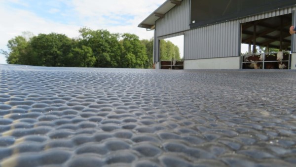 Als Spezialist für Gummi-Stallbeläge als Rollenware, nutzten wir unseren Vorteil, um eine fugenlose und damit leicht zu reinigende Liegebox für den Außenbereich zu schaffen. Die im Werk produzierbare Breite ermöglicht eine Fläche für vier Liegeplätze aus nur einer Gummibahn. Es befinden sich jeweils zwei nebeneinander und zwei gegenüber. Die ITW-Haltungsstufen 3 & 4 für die Milchviehhaltung können auf effiziente Weise erreicht werden.