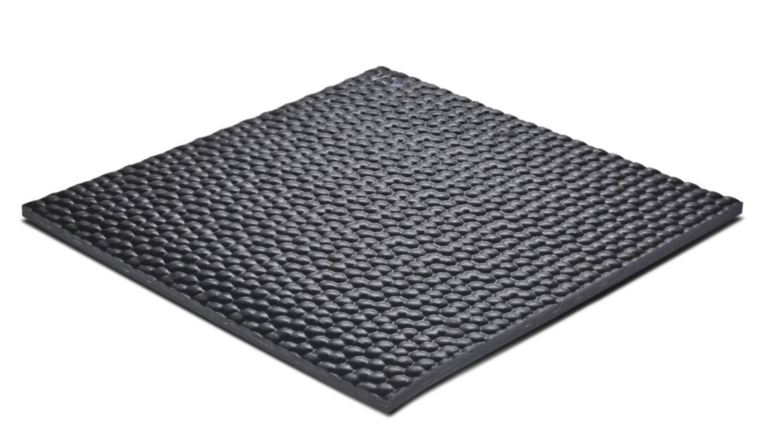 Komfortbelag N33 von Huber Technik Frontansicht. Hammerschlagprofil und Noppen sind sichtbar.